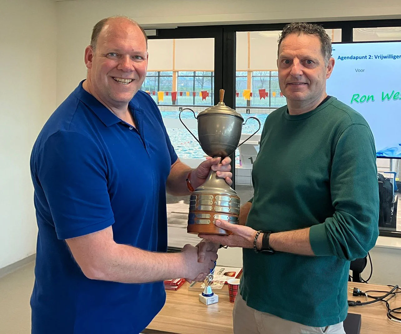 Ron Wessels heeft tijdens de Algemene Ledenvergadering van zwemvereniging WVZ de vrijwilligersbokaal ontvangen. Zwemvereniging WVZ en ZVZ vormen samen de basis van Startgemeenschap WZC. De vrijwilligersbokaal wordt jaarlijks uitgereikt aan een vrijwilliger die zich het afgelopen jaar bijzonder heeft ingezet voor de vereniging. Ron treedt hiermee in de voetsporen van veel (oud-) waterpoloërs en andere (oud-)leden van WVZ.