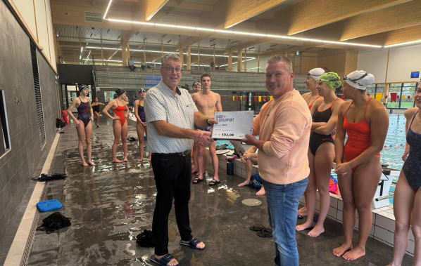 Op 7 oktober j.l. kreeg de penningmeester Eric van Straaten uit handen van Peter Bergenhenegouwen (rechts) van de Rabobank een cheque ad EUR 592,08 uitgereikt. WVZ is blij met deze bijdrage en zal dit bedrag gaan inzetten voor de zwemkampen van de afdelingen. Ieder steuntje is daarbij altijd welkom. Dank Rabobank!
